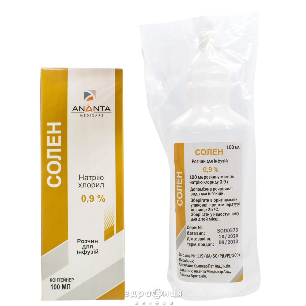 | Форма выпуска | розчин для інфузій 0,9 %, по 100 мл у контейнері, по 1 контейнеру в плівці у коробці |