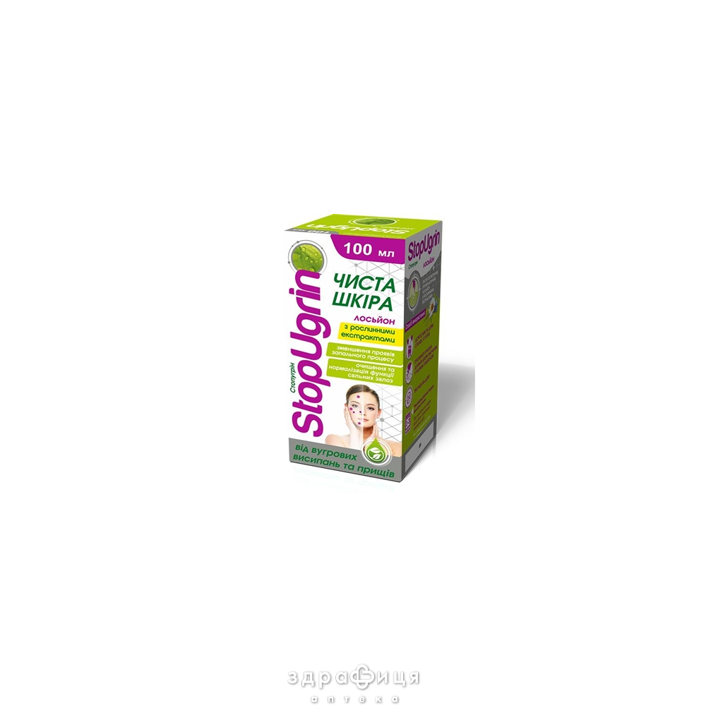 Лосьон от украинского бренда «Вертекс» – простой и эффективный способ избавиться от угрей. Он уменьшает проявление воспалительного процесса, тем самым улучшая общее состояние и микрорельеф кожного покрова. Благодаря растительным экстрактам травы кладовщика вязолистая, цветкам ромашки, корням окопника лекарственного и коры ивы косметический продукт устраняет несовершенство эпидермиса и дополнительно ухаживает за ним. С StopUgrin ваше личико будет чистым, свежим, гладким и сияющим!