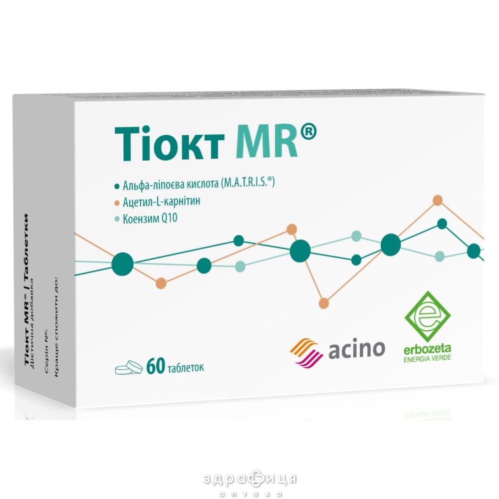 Тиокт MR® может быть рекомендован в качестве диетической добавки к рациону питания, как дополнительный источник альфа-липоевой кислоты, L-карнитина и коэнзима Q10. Компоненты, входящие в состав Тиокт MR®, способствуют поддержанию нормального энергетического метаболизма, обмена глюкозы и липидов (занимают важное место в утилизации углеводов и осуществлении нормального энергетического обмена, улучшающего «энергетический статус» клеток); обладают цитопротективными свойствами; поддерживают нормальную дезинтоксикационную функцию печени