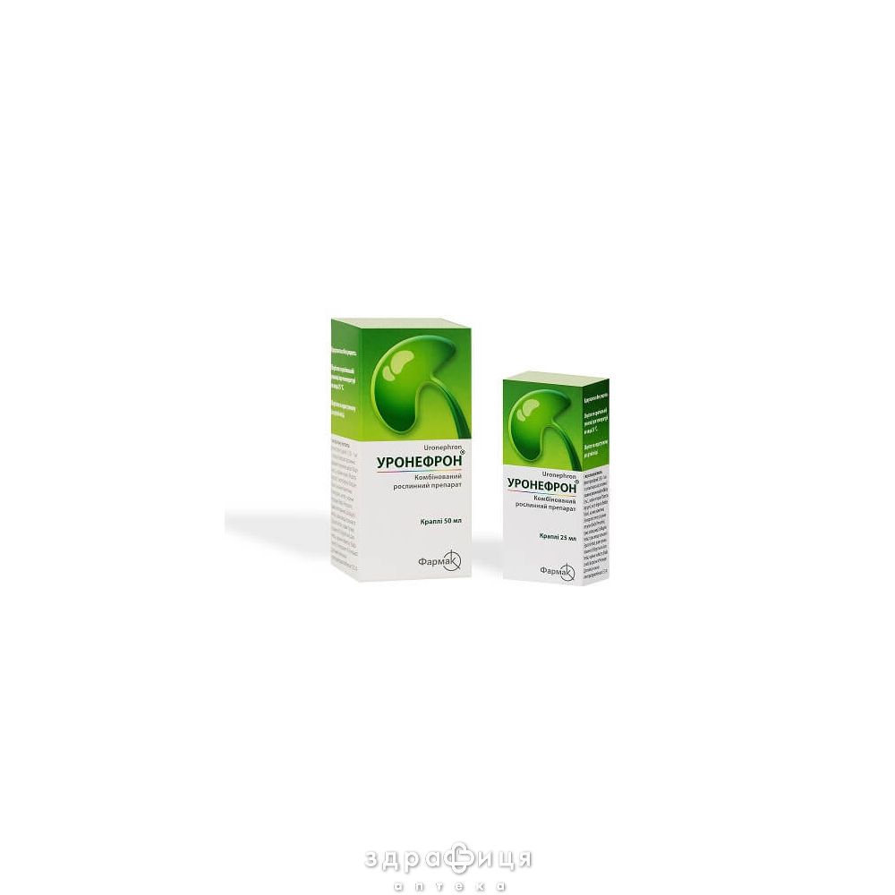 Уронефрон – комбинированный препарат растительного происхождения. Оказывает противовоспалительное, мочегонное, спазмолитическое и антимикробное действие. Мочегонное действие обусловлено производными флавона, инозитом, сапонинами и силикатами. Последние также усиливают выведение мочевой кислоты при уратных отложениях в почках. Препарат предотвращает кристаллизацию минеральных компонентов в мочевыводящих путях, благоприятно влияет на сохранение равновесия между коллоидами и кристаллоидами мочи. Сапонины уменьшают поверхностное натяжение, образуют защитные коллоиды и эмульгируют патогенные компоненты мочи, предотвращают образование песка и камней в почках. Способствует вымыванию песка и мелких конкрементов, предотвращает увеличение конкрементов или появление новых.