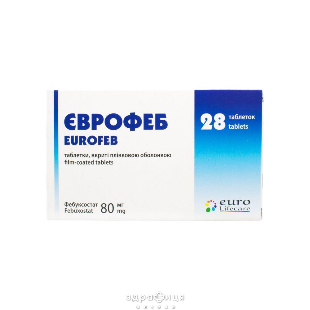 | Состав | 1 таблетка, вкрита плівковою оболонкою, містить фебуксостату 80 мг |