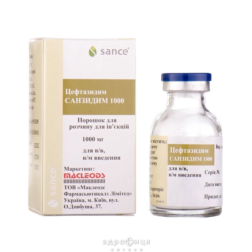 Склад | 1 флакон містить цефтазидиму пентагідрат еквівалентно цефтазидиму 1000 мг |
