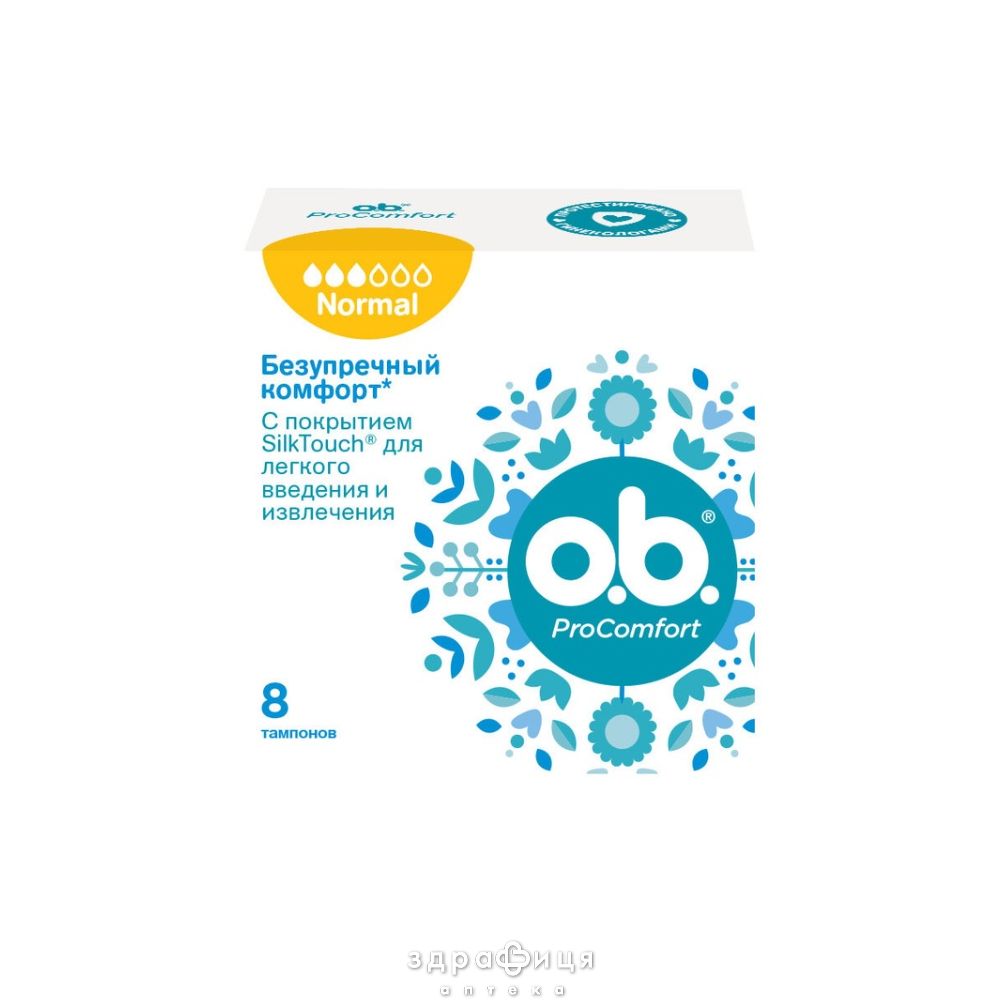 o.b. ProComfort забезпечують легке введення і надійний захист завдяки унікальному** покриттю SilkTouch, спіралеподібним жолобкам FluidLock і новій технології Smooth Technology* для ще більш гладкої поверхні тампона o.b. ProComfort Normal (Обі Нормал).