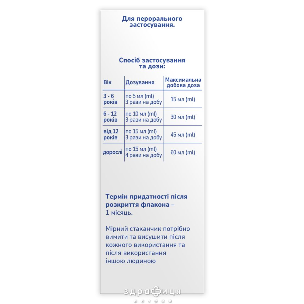 | Склад | 1 мл сиропу містить 1,5 мг бутамірату цитрату |