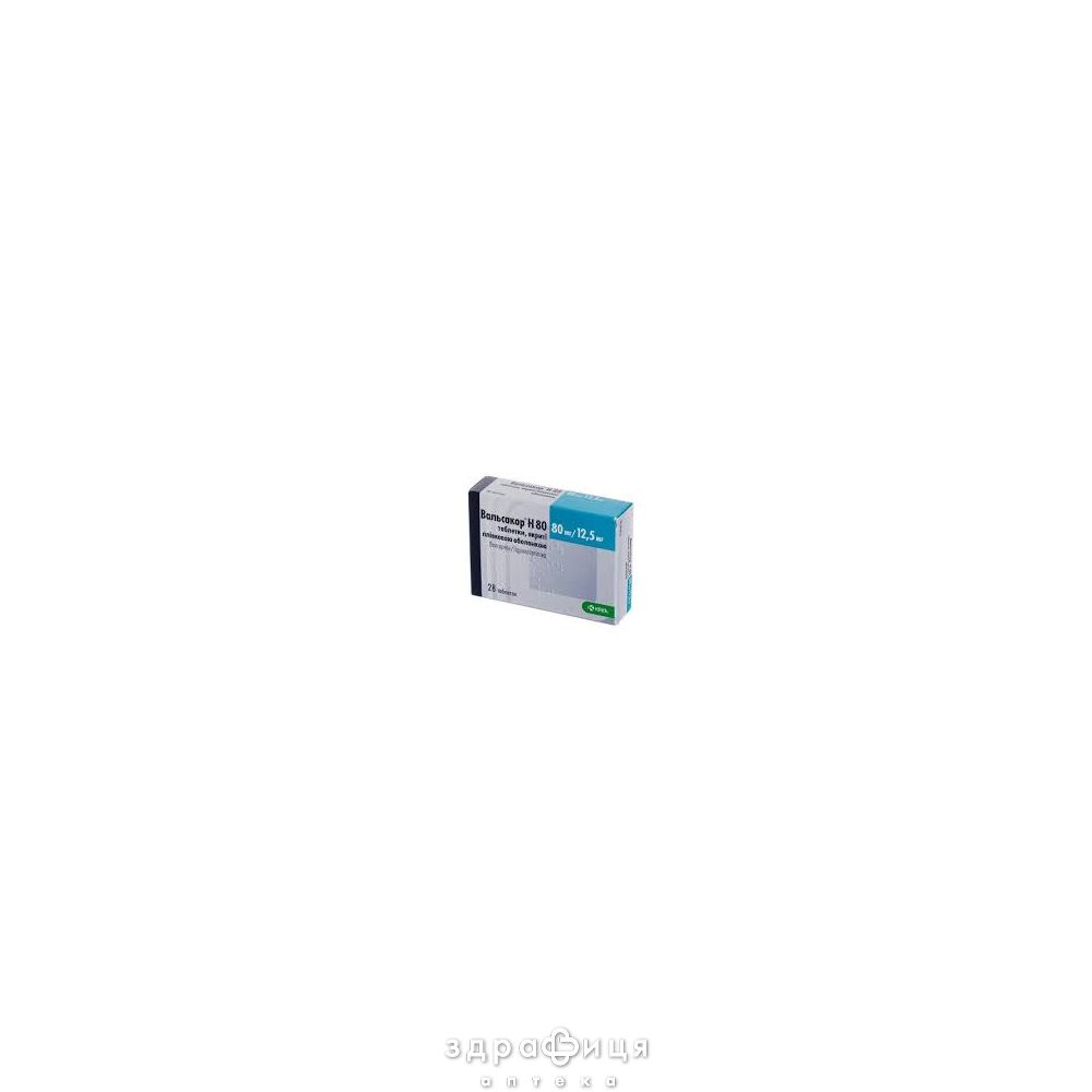 | Склад | 1 таблетка, вкрита плівковою оболонкою, містить 80 мг валсартану та 12,5 мг гідрохлортіазиду |