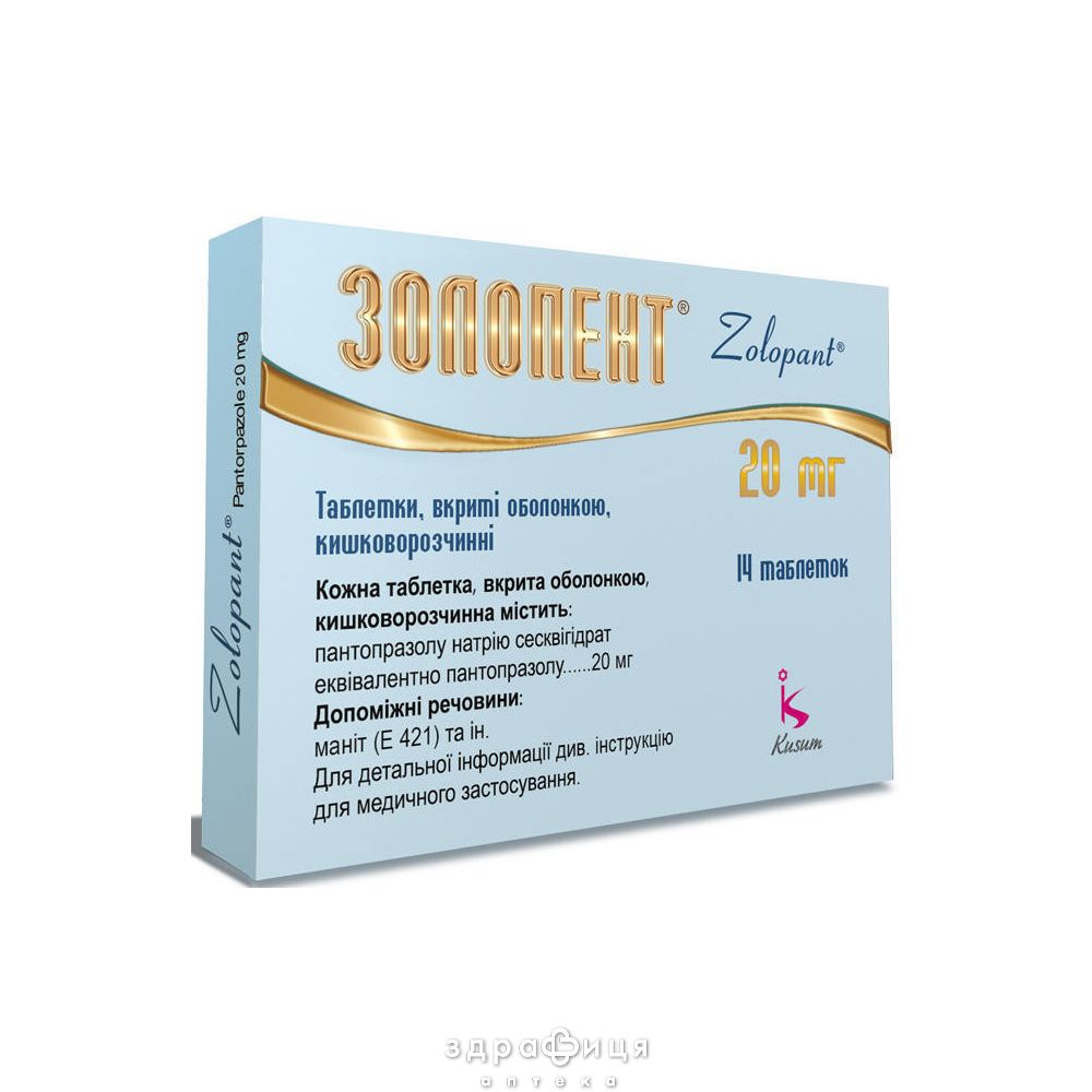 Золопент є препаратом для лікування кислотозалежних захворювань. Це інгібітор протонної помпи, який зменшує виділення шлункового соку та кислотність шлунку. Пантопразол має високу біодоступність та добре абсорбується в організмі. Він швидко починає діяти і має тривалий терапевтичний ефект.